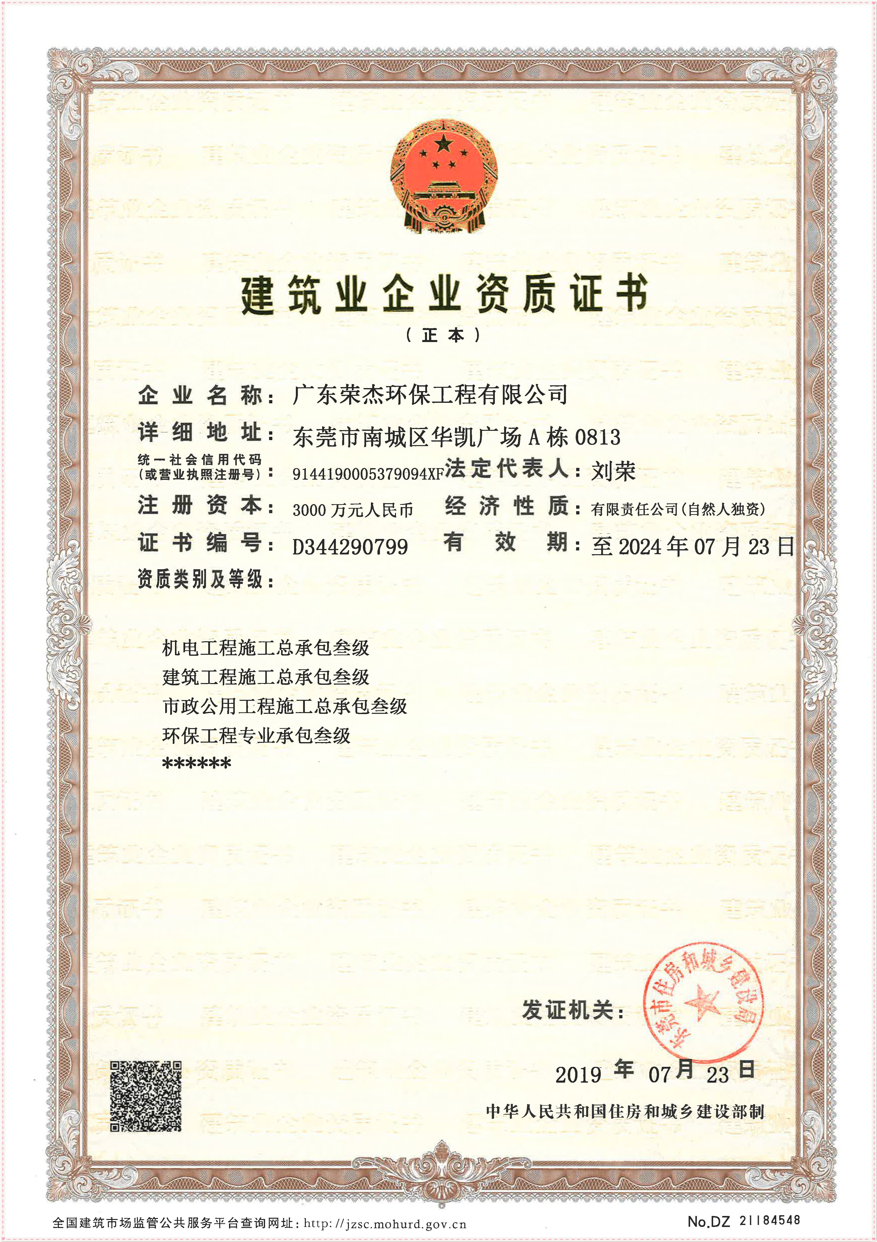 公司依托长沙环境保护职业技术学院、湖南农业大学资源环境学院、苏州城建环保学院、广东省环境保护工程研究设计院,潜心研究废水处理工程、废气工程、净水工程的最前沿工艺技术。公司拥有市政公用工程施工总承包叁级、环保工程专业承包三级资质、机电工程施工总承包叁级、建筑工程施工总承包叁级、安全生产许可证、广东省环境污染治理废水乙级、废气乙级能力评价证书、 ISO9001质量管理体系认证证书、ISO14001环境管理体系认证证书、ISO45001职业健康安全管理系认证证书、广东省守合同重信用企业证书、商品售后5星服务认证证书、资信等级AAA证书、质量.服务.诚信AAA企业。公司还拥有国家实用新型专利10项,高新技术产品2项。